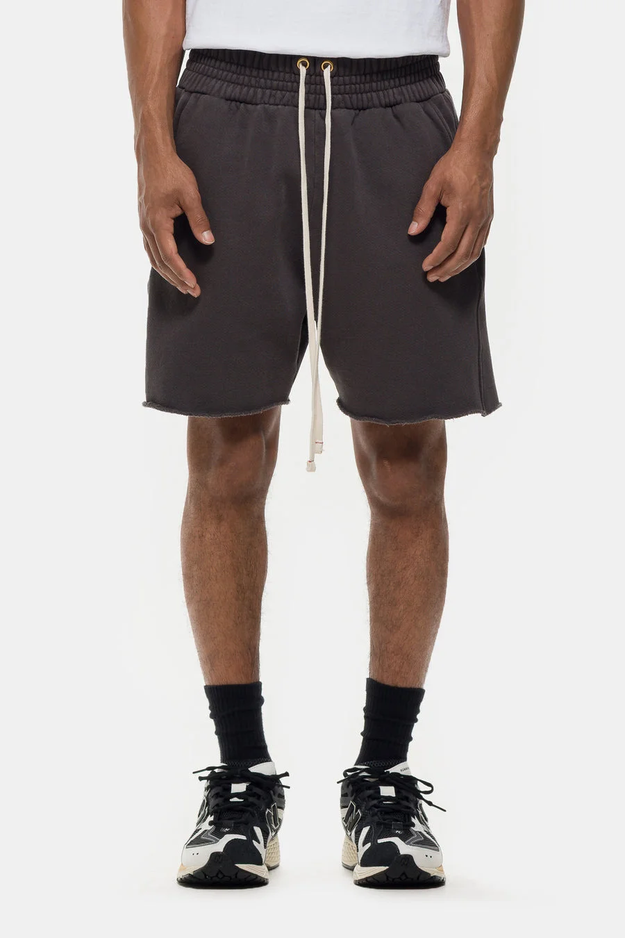 Les Tien heavyweight sweat short in vintage black. Features garment dyed finish, elastic drawstring waistband, and raw hem Fit - Oversized fit Feature - Oversized fit Fabrication - 100% cotton SKU: CF-3000JTBLK-M