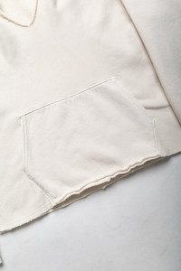 - Color: Ivory - Vintage Brushed Texture - Laundered - Pre Shrunk - Garment dyed - Raw slit at neck opening - No Shoulder seam - Drop shoulder - Raw Bottom Edge - Reverse Outer Stitching Details - Gold Plated Cobrax Grommets - Front Kangaroo Pockets - Double Sided Gussets - Deep Hood - 100% cotton - Made in USA - Model is 6'2 wearing a size M