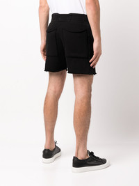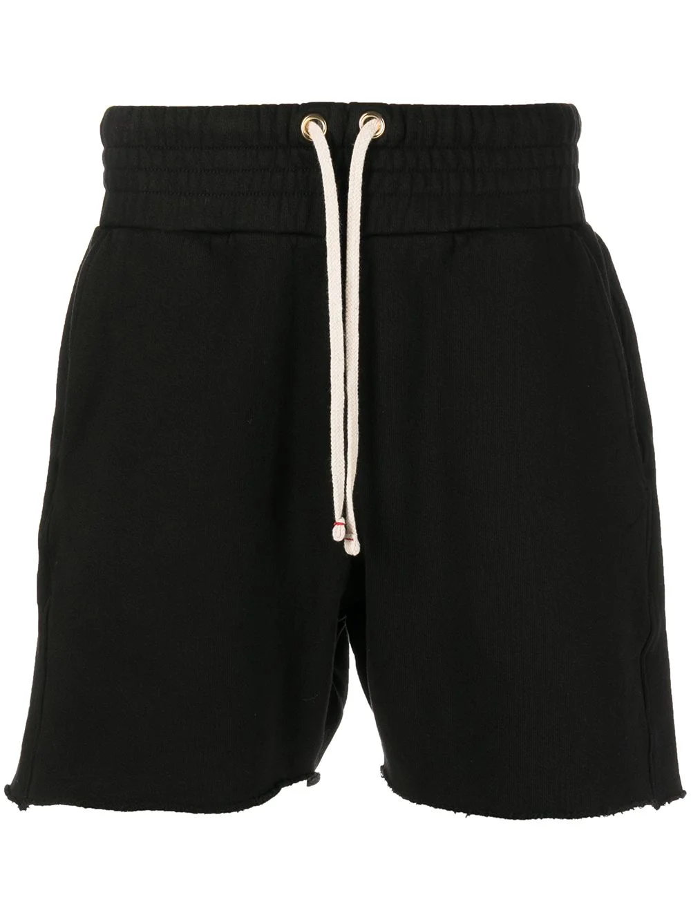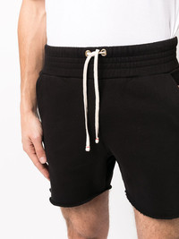 raw-cut hem track shorts black cotton raw-cut hem two rear flap pockets two side inset pockets drawstring fastening waist straight leg above-knee length Imported Composition Outer: Cotton 100% SIZE & FIT Model measurements Height 6 ft 2 in(1.88 m) Bust/Chest 38.18 in(97 cm) Hips 37 in(94 cm) Waist 29.92 in(76 cm) Washing instructions Machine Wash