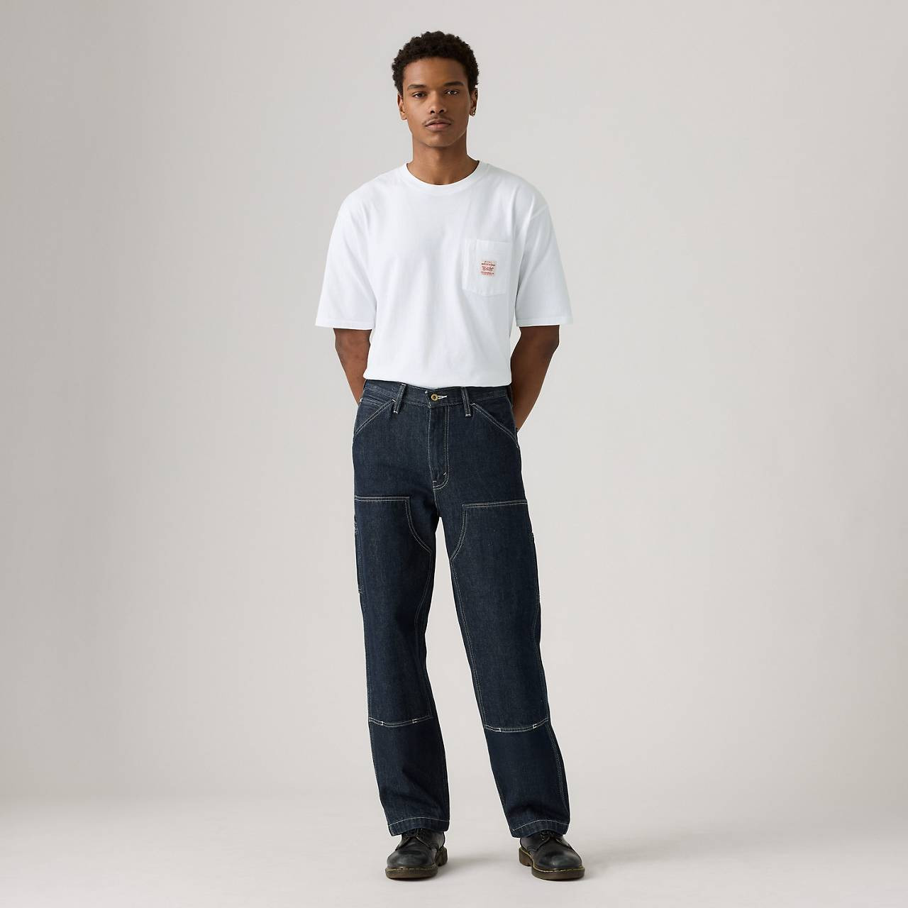 We mixed style with workwear for these 568™ Loose Straight Double-Knee Carpenter jeans that feature a modern, loose fit and a straight leg. They hit right at the waist and are made with a durable double-knee design. - Everything you love about cargo pants mixed with clean-cut work pants - Super comfortable, roomier fit - With a double-knee design - Features a straight leg - Made with non-stretch canvas - Built to get the job done with sturdy construction and all-day comfort Style # A73670013 Color: Mornin Classical Canvas - Dark Wash How it Fits - Loose Throughout - Sits At Your Waist - Straight leg - Front rise: 12 1/4",Knee: 21 1/2",Leg opening: 18",Measurements based on size 32 Composition & Care - 100% Cotton - Denim - Non-Stretch - Zip fly - 5-pocket styling - Imported
