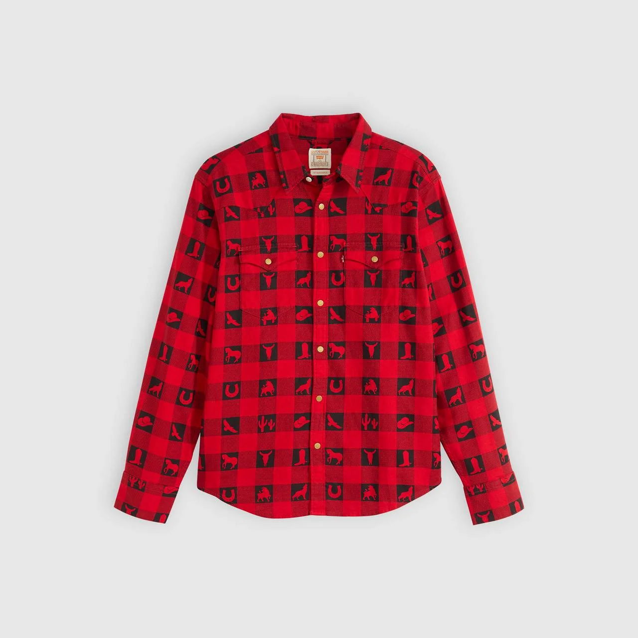 Cowboy boots and chaps not included. As a brand with deep roots in the American West, there's nothing we love more than this rugged-yet-put-together Barstow Standard Fit Western Shirt. True to the classic, this essential features a distinctive snap placket, pointed yoke and curved hem. Pair it with your favorite blue jeans for the iconic denim-on-denim look, or size up and wear like a jacket—there are no rules in the Wild West. - Our Western Shirts have been worn by generations and continue to define the modern dress code - A testament to timeless American style - Made with all the features that set our Western Shirt apart from the rest - Two button-pockets at chest Style # 857440106 Color: Desert Icon Buffalo - Red How it Fits - Standard fit Composition & Care - 100% Cotton - Twill - Point collar - Long sleeves - Imported