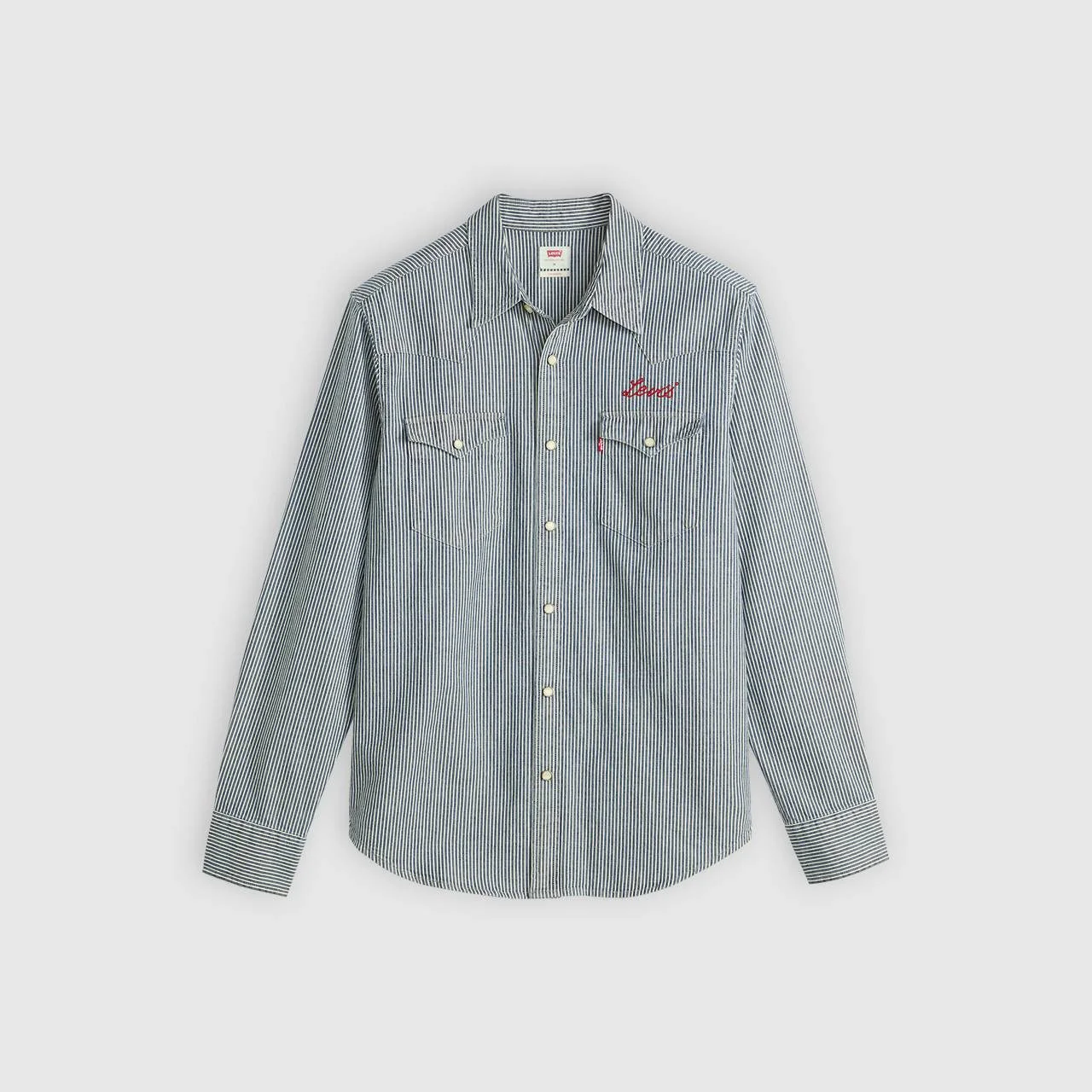 Cowboy boots and chaps not included. As a brand with deep roots in the American West, there's nothing we love more than this rugged-yet-put-together Classic Standard Fit Western Shirt. True to the classic, this essential features a distinctive snap placket, pointed yoke and curved hem. Pair it with your favorite blue jeans for the iconic denim-on-denim look, or size up and wear like a jacket—there are no rules in the Wild West. - Our Western Shirts have been worn by generations and continue to define the modern dress code - A testament to timeless American style - Made with all the features that set our Western Shirt apart from the rest Style # 857450236 Color: Roadtrip Stripes - Medium Wash How it Fits - Standard fit Composition & Care - 100% Cotton - Denim - Point collar - Long sleeves - Imported