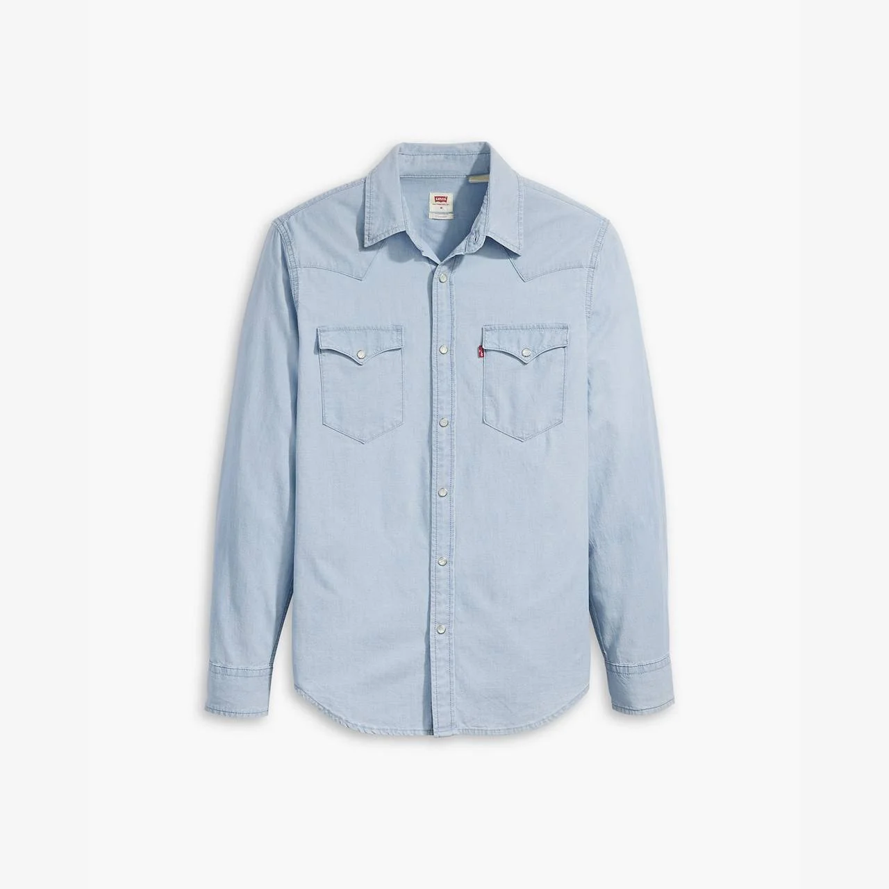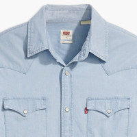 Cowboy boots and chaps not included. As a brand with deep roots in the American West, there's nothing we love more than this rugged-yet-put-together Classic Standard Fit Western Shirt. True to the classic, this essential features a distinctive snap placket, pointed yoke and curved hem. Pair it with your favorite blue jeans for the iconic denim-on-denim look, or size up and wear like a jacket—there are no rules in the Wild West. - Our Western Shirts have been worn by generations and continue to define the modern dress code - A testament to timeless American style - Made with all the features that set our Western Shirt apart from the rest Style # 857450155 Color: Evergreen - Light Wash How it Fits - Standard fit Composition & Care - 100% Cotton - Chambray - Point collar - Long sleeves - Machine wash cold, Do not bleach, Tumble dry medium, Hot iron if needed, Dry cleaning possible, Wash inside out with like colors - Made in Bangladesh
