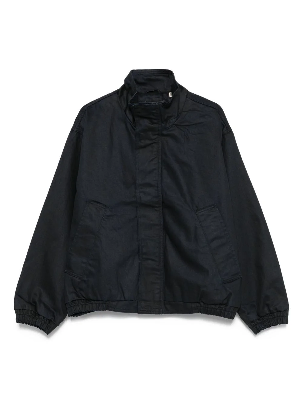 elasticated-cuff cotton jacket Highlights - Black - Cotton - Zip fastening - High neck - Pockets to the sides - Elasticated cuffs and hem Imported Composition Outer: Cotton 100%, Polyurethane 100% Lining: Polyester 100% SIZE & FIT Model measurements Height 6 ft 0 in(1.84 m) Bust/Chest 37.79 in(96 cm) Hips 37 in(94 cm) Waist 31.49 in(80 cm) Washing instructions Dry Clean Only