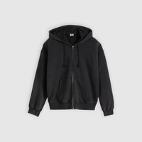 Your everyday sweatshirt gets a modern cut. We designed our Hayes Boxy Full-Zip Sweatshirt with an adjustable hood, a boxy, relaxed fit and topped it all off with soft, French terry construction. - An everyday sweatshirt with a modern cut - Features a boxy, relaxed fit - Made with soft French Terry fabric - This piece is made with a vintage-inspired wash that gives it the supersoft feel and broken-in look of your favorite vintage find. Style # 005PJ0000 Color: Grunge Wash Jet Black - Black