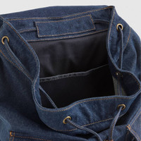 Our Heritage Rucksack is an essential for traveling. We made it with durable cotton canvas and gave it a roomy interior with a laptop sleeve, outside pockets and 25L of capacity. - A versatile rucksack - With a roomy interior - Features 25L capacity Style # 002GW0000 Color: Jeans Blue - Dark Wash How it Fits - 43(L)x11(W)x32(H)cm; Capacity - 25L Composition & Care - 90% Cotton, 10% Bovine Leather - Denim - Snap Hook - Do Not Wash - Made in CN