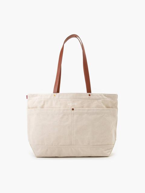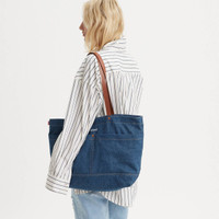 Inspired by our archive, this Tote-All Bag is the ideal throw-it-all-in-and-go bag. We crafted it with durable cotton canvas, leather straps, a main compartment with a snap closure, an interior patch pocket, rivets for reinforcement and gave it two handy top handles. - A tote bag inspired by our archives - With a roomy interior and a snap button closure - Features an interior patch pocket - Crafted with durable 20 oz cotton canvas - With a 20 liter capacity Style # D79590002 Color: Medium Blue How it Fits - 38x16x33cm; 15.0 x 6.3 x 13.0 inches Composition & Care - 95% cotton, 5% bovine leather - Cotton - Zip - Do not wash - Made in China
