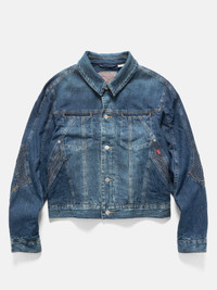 This limited-edition Levi’s x Kiko Kostadinov jacket blends classic denim attitude with the designer’s sculptural, forward-thinking approach. Cut from sturdy, non-stretch indigo denim with a smooth cotton lining, it delivers everyday comfort while holding a clean, structured shape. Subtle but considered details—two-tone stitching, chest welt pockets, side-entry hand pockets, and articulated back hem darts—add depth and refinement. The result is a modern reinterpretation of the denim jacket that shifts effortlessly between casual and elevated styling. DETAILS - 0041I0000 - Collaborative product with Kiko Kostadinov - 100% Cotton - Relaxed, cropped fit - Point collar - Front button closure - Welt chest pockets - Side entry hand pockets - Topstitching details on the back yoke and side pocket flaps - Back hem dart details - Made in Bulgaria