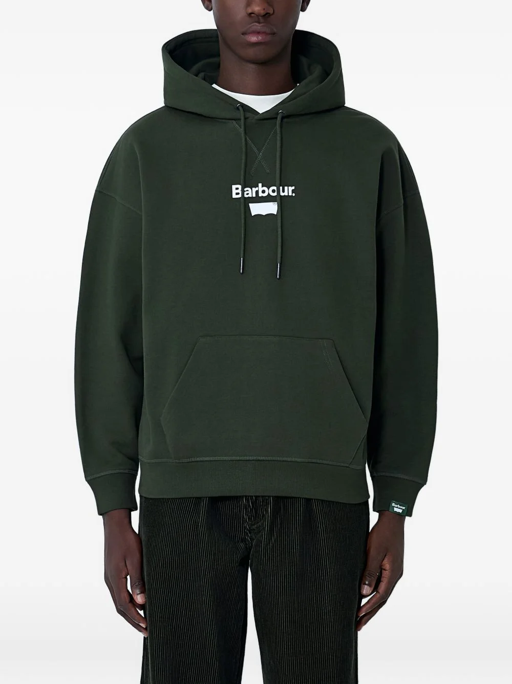 x Barbour logo-detail hoodie Highlights - Green - Hooded neckline - Long sleeves - Kangaroo pocket Made in United Kingdom Composition Cotton 98%, Lycra 2% Washing instructions Read Manufacturer Guidelines