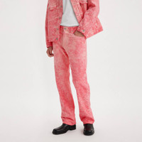 In the late ‘80s, Stussy emerged from the Southern California surf scene and swept through the fashion world, revolutionizing apparel and redefining the look and idealogy of casual clothing. Drawing inspiration from our shared California roots, our latest collaboration features two classic Levi’s® silhouettes reimagined with Stussy’s signature design aesthetic. These Jacquard jeans were crafted with signature stitching one inch away from the seams and a wider J-stitch at the fly. They’re designed with stacking at the hem, a classic straight leg with a slightly looser cut, 5-pocket styling and a zip fly. Plus, we made them with 2-ply jacquard twill fabric woven with Stussy's signature pattern, a two-tone garment dye design and a co-branded patch and button shanks. - Vintage-inspired jeans with a Stussy update - Cut with a loose fit - Crafted with 2-ply jacquard twill fabric - Woven with a signature Stussy "s" pattern - Features two-tone garment dye for a one-of-a-kind vintage look and feel - With burnished tin hardware - Finished with a co-branded patch and button shanks Style # A52190000 Color: Pink Composition & Care - 100% cotton - Zip fly - Imported