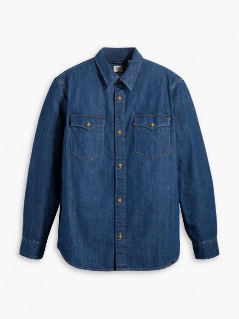 Cowboy boots and chaps not included. As a brand with deep roots in the American West, there's nothing we love more than this rugged-yet-put-together Relaxed Fit Western Shirt. True to the classic, this essential features a distinctive snap placket, pointed yoke and curved hem. Pair it with your favorite blue jeans for the iconic denim-on-denim look, or size up and wear like a jacket—there are no rules in the Wild West. - Our Western Shirts have been worn by generations and continue to define the modern dress code - A testament to timeless American style - Made with all the features that set our Western Shirt apart from the rest - Two button-pockets at chest Style # A19190020 Color: Indigo Rinse - Dark Wash How it Fits - Relaxed fit Composition & Care - 100% Cotton - Denim - Point collar - Long sleeves - Machine Wash Cold, Do Not Bleach, Tumble Dry Medium, Hot Iron If Needed, Dry Cleaning Possible, Wash Inside Out With Like Colors