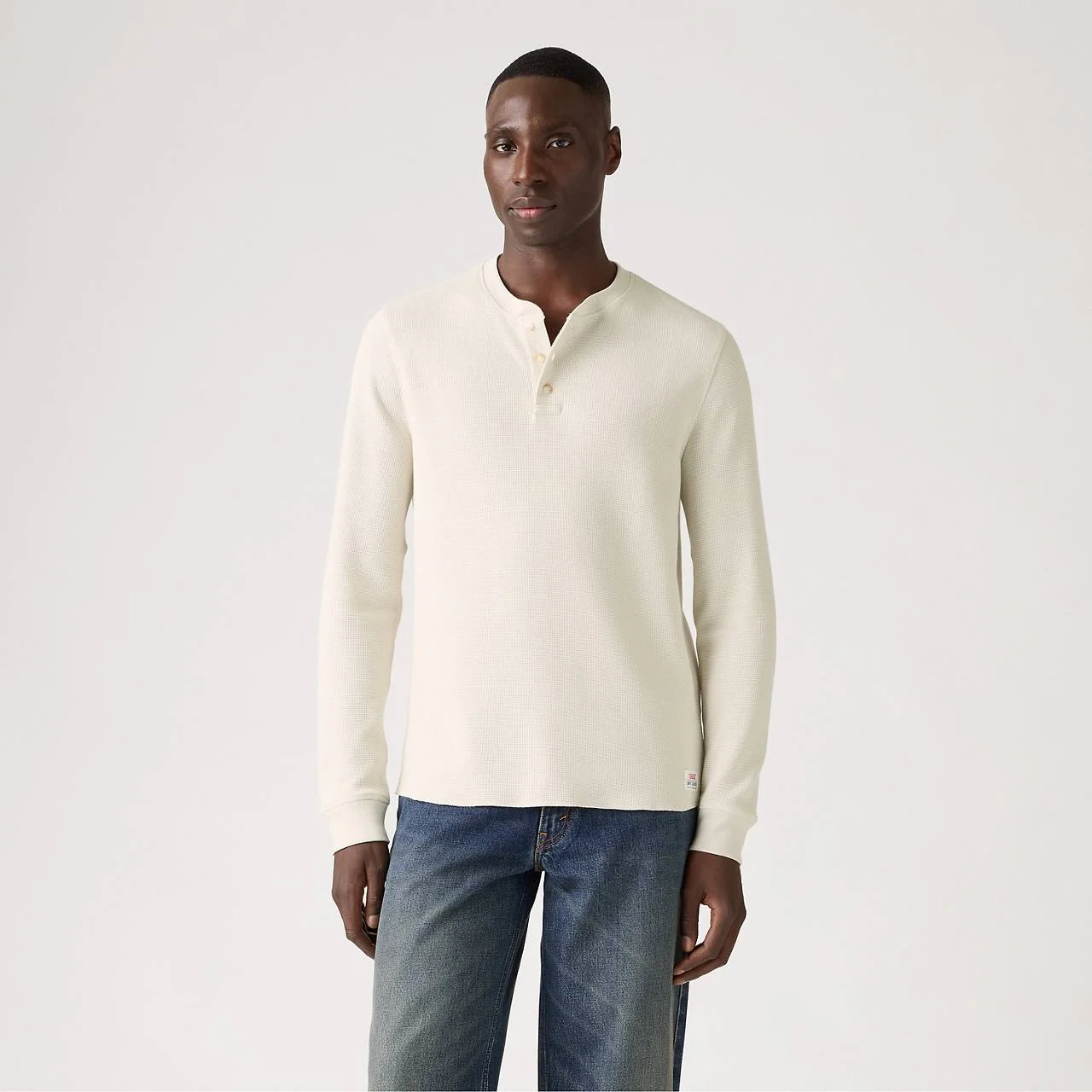 Inspired by one of the first knitwear pieces we made in the early 1900s, Levi's® Dry Goods was resurrected in the late '90s—and now, it's back again. Nothing beats a timeless henley. We made this one with a simple placket, a relaxed fit and supersoft fabric. - Part of Levi's® Dry Goods: Inspired by one of the first knitwear pieces we made in the early 1900s - A classic henley - Cut with a relaxed fit Style # 003R70006 Color: Silver Birch - White How it Fits - Relaxed fit Composition & Care - 60% Cotton, 40% Polyester - Henley - Short sleeves - Imported