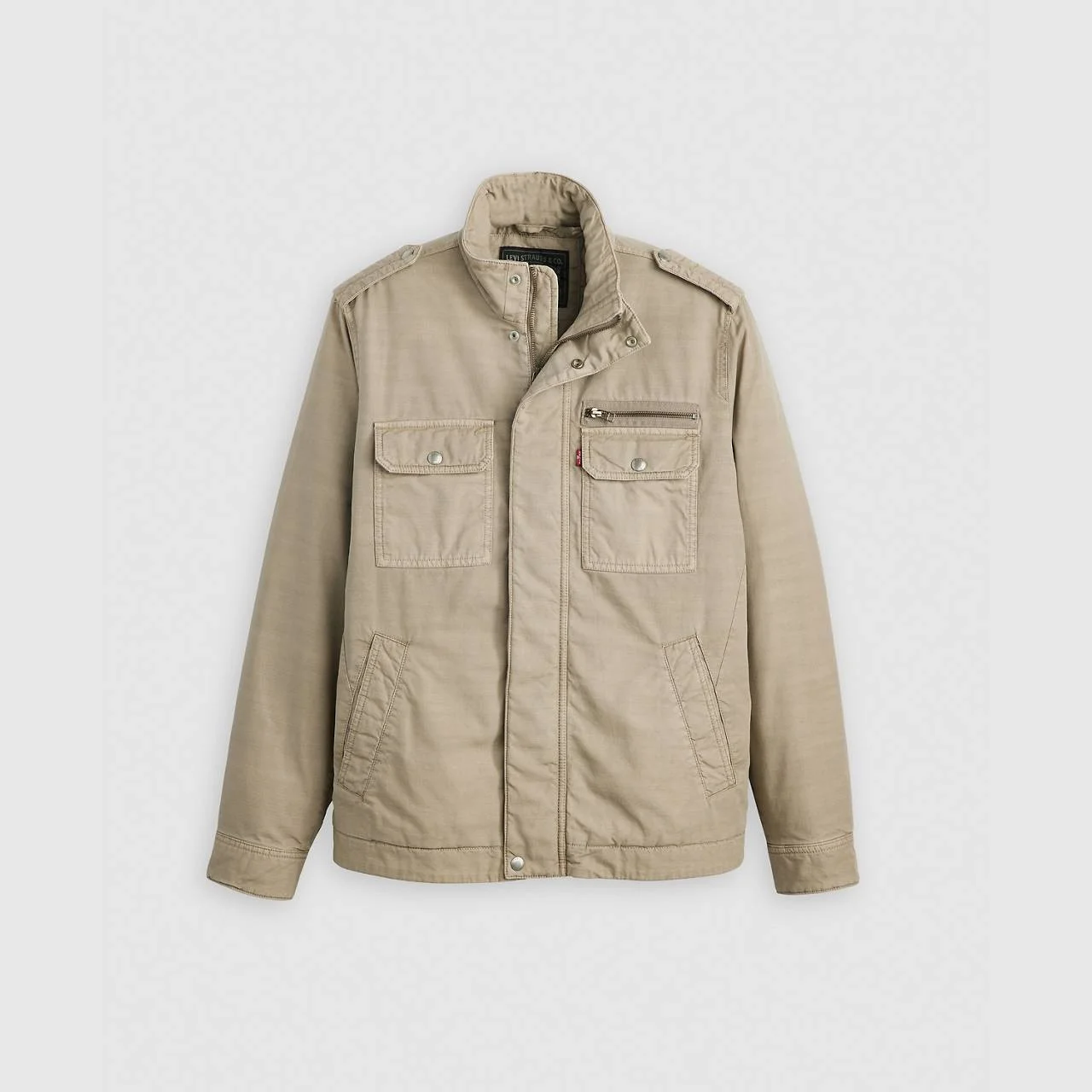 Inspired by vintage military jackets, our Menlo Military Jacket features a standard fit, a full zip design and handy pockets. - A military-inspired jacket - Cut with an easy, standard fit Style # 001K20000 Color: Vintage Khaki - White How it Fits - Standard fit Composition & Care - 100% Cotton - Slub - Full zip - Long sleeves - Machine wash cold - synthetic /permanent press cycle, Do not bleach, Tumble dry low, Cool iron if needed, Dry cleaning possible, Wash with like colors - Made in India