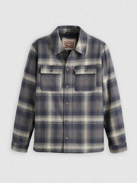 Center front zipper closure with snap button closure placket. Accent yoke design in a contrast fabric. Added shirt tail at back hem and rib knit storm cuffs for added warmth and comfort. Two chest flap pockets with snaps, two lower pockets with side entry and one interior welt pocket with zipper closure. Signature Levi's red tab on left chest pocket. Style # 594930025 Color: Tan and Dark Brown - Multi-Color Composition & Care - SHELL: 100% Polyester FAUX FUR COLLAR: 100% Polyester LINING: 100% Polyester FILLER: 100%Polyester KNIT: 98% Polyester 2% Spandex - Machine wash cold with like colors, delicate cycle, tumble dry low - Imported