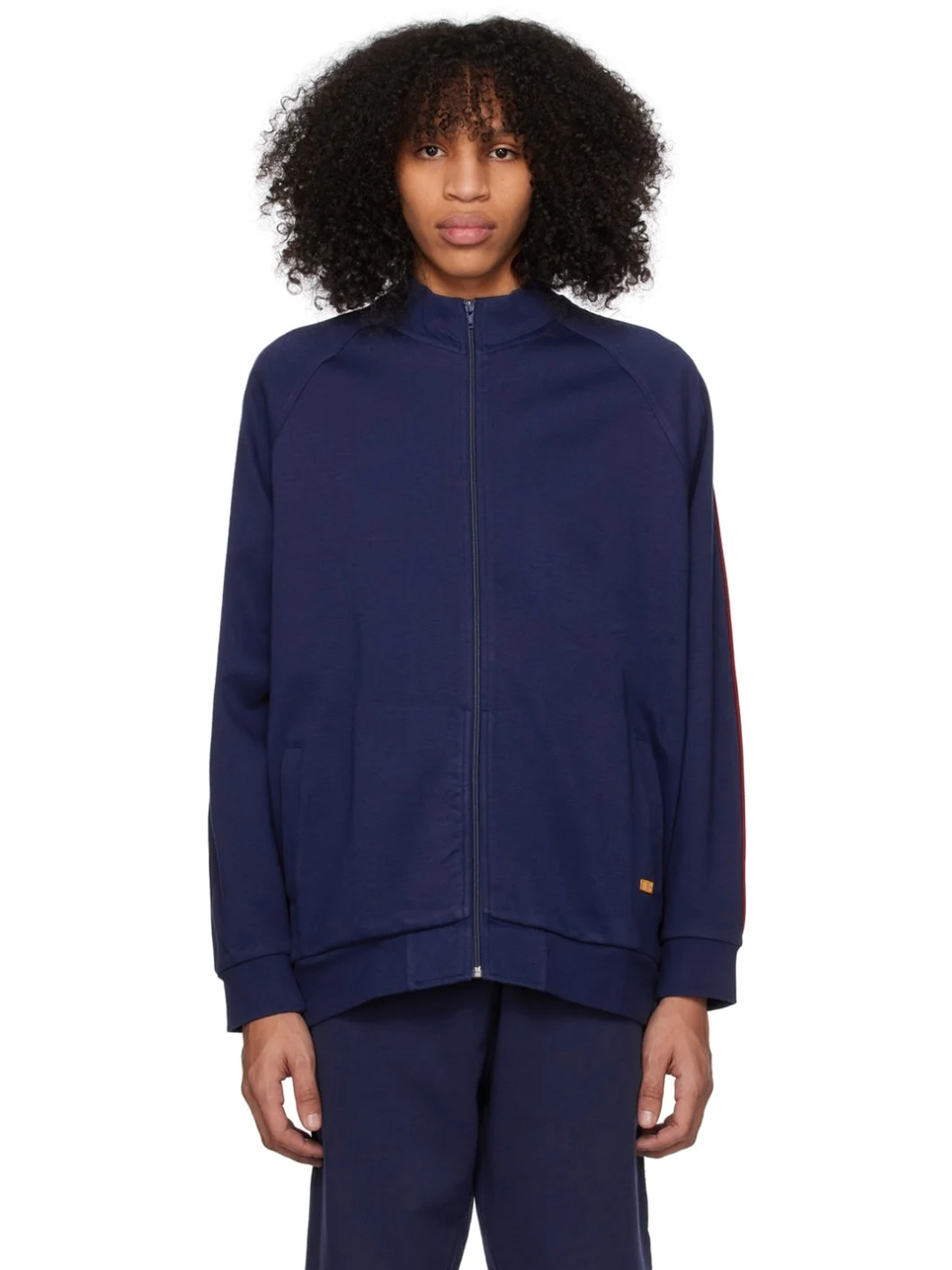 Stretch cotton-blend jersey track jacket. · Stand collar · Zip closure · Welt pockets · Logo embroidered at front hem · Rib knit hem and cuffs · Piping at raglan sleeves · Unlined Part of the Levi's® Gold Tab™ collection. Supplier color: Navy 81% cotton, 11% polyester, 8% elastane. Made in Pakistan 231099M202001