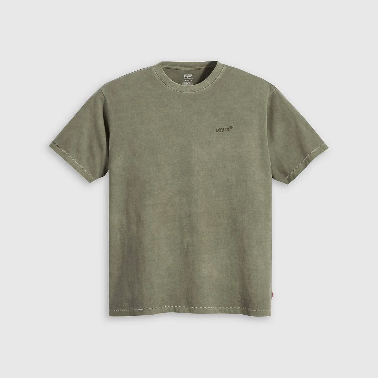 We found this Levi's® garment in a vintage shop and loved it so much that we decided to revive it for the 21st century. We started with a 100% organic cotton jersey, gave it a boxy fit and finished it off with a garment dye treatment for a worn-in look and supersoft feel. The end result? The essential T-shirt at its very finest. - A revival of a vintage shop find - A boxy silhouette with dropped shoulders - Finished with a subtle logo at the chest - Garment dyed for a vintage look and soft, lived-in feel Style # A06370046 Color: Thyme Garment Dye - Green How it Fits - Relaxed fit Composition & Care - 100% cotton - Cotton - Crewneck - Machine wash cold - normal cycle. Wash inside out with like colors, do not bleach, tumble dry low, warm iron if needed, dry cleaning possible. Color may transfer when new, wash before wearing. - Imported