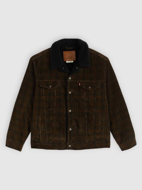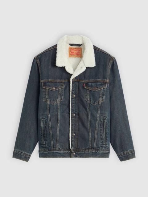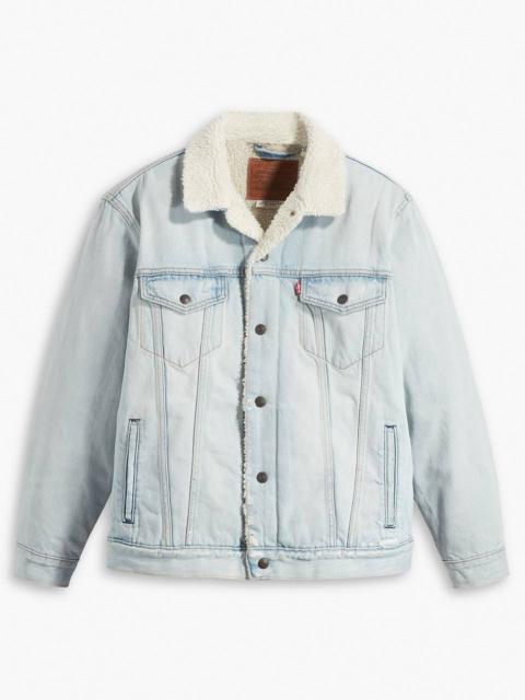 The cozier counterpart to our Original Trucker Jacket, our Relaxed Sherpa Trucker Jacket is constructed with durable denim, lined with fuzzy sherpa for extra warmth and cut with a relaxed fit. Iconic and instantly recognizable, our Trucker Jacket has been a symbol of individual self-expression for decades. - The original jean jacket designed with superior craftsmanship and a cozy sherpa lining - A relaxed fit throughout - Levi’s® branded metal buttons and tapered “V” stitches make it instantly recognizable - This iconic essential truly looks good on everyone, sized up or down Style # A57840026 Color: Kentucky Blue - Light Wash How it Fits - Relaxed fit Composition & Care - Primary Fabric: 100% Cotton; Lining: 100% Polyester - Denim - Point collar - Long sleeves - Imported