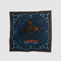 This vintage-inspired Rodeo Champion Bandana features western artwork and distinct Levi's® branding. - A western-inspired bandana - With distinct Levi's® branding Style # 004D00000 Color: Rodeo Champion Dress - Blue How it Fits - 50(L)*50(W) Composition & Care - 100% Cotton (Generic) - Plain Weave - Hand Wash - Imported