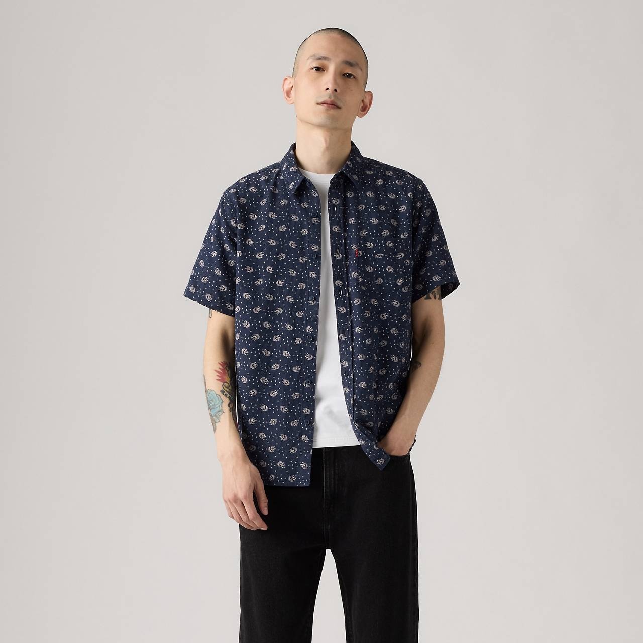 The perfect balance between refined and effortlessly casual. Our Short-Sleeve Sunset Pocket Standard Fit Shirt was crafted with a streamlined silhouette, classic detailing and a handy chest pocket. - A classic style inspired by a garment from our archive - Timeless single pocket detail - Size up for a relaxed, comfortable fit - Airy. Breathable. Light. This garment was made with a blend of linen and cotton to keep you looking good and feeling comfortable. Style # 866240069 Color: Blast Floral Dress Blues How it Fits - Standard fit Composition & Care - 23% Cotton, 43% Linen, 34% Viscose (ECOVERO™) - Cotton Linen - Point collar - Short sleeves - Machine wash cold, Do not bleach, Tumble dry medium, Warm iron if needed, Dry cleaning possible, Wash inside out with like colors - Made in India
