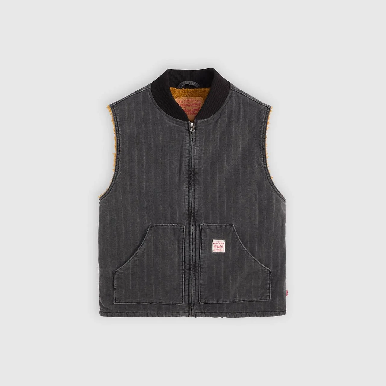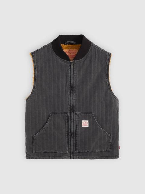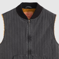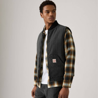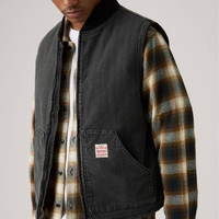 The kind of vest you'll want on your next adventure. Our Sansome Vest is both stylish and functional, with two oversized patch pockets, a zip front and an easy, relaxed fit. - A utilitarian-inspired vest - Features a relaxed fit - With a middle zip design - Made with denim - Built to get the job done with sturdy construction and all-day comfort Style # A85800004 Color: Double Duty T - Black How it Fits - Relaxed fit Composition & Care - 100% Cotton - Herringbone - Full zip - Sleeveless - Imported