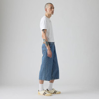 Some call them jorts, others call them skater jeans—we call them our new go-to. Made with classic, non-stretch denim, our Twisted Baggy Capris are loose through the seat and thigh and are cut with a perfect below-the-knee length. We also gave them a ring buckle belt for added adjustability. - Versatile, baggy capris - Cut with a loose fit through the seat and thigh - Features a below-the-knee length - Complete with a ring buckle belt - Made with non-stretch denim - Hold the H2O: This garment was made using recycled water, which helps us to reduce our impact on this finite resource Style # 0049W0000 Color: Lets Do The Twist - Medium Wash How it Fits - Loose through the seat and thigh - Mid rise - Wide leg Composition & Care - 100% Cotton - Denim - Non-Stretch - Zip fly - 5-pocket styling - Imported