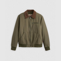 Two lower pockets and one chest zipper pocket Levis Red Tab at lower left side seam Zipper Long sleeves Made in China - Machine wash cold with like colors, Delicate cycle, Use only non-chlorine bleach when needed, Tumble dry low, Cool iron if needed Style # 594850002 Color: Z9999 Cny Black Gold - Black How it Fits - Experience effortless style and comfort with this western bomber - featuring a sleek laydown collar and distinctive western arcuate yoke detail. This jacket’s perfect balance of rugged sophistication and soft cotton embrace will make it your new favorite companion for every adventure. - Laydown collar - Center front zipper closure - Rib knit cuffs and hem Composition & Care - 100% Cotton - Cotton - Standard fit