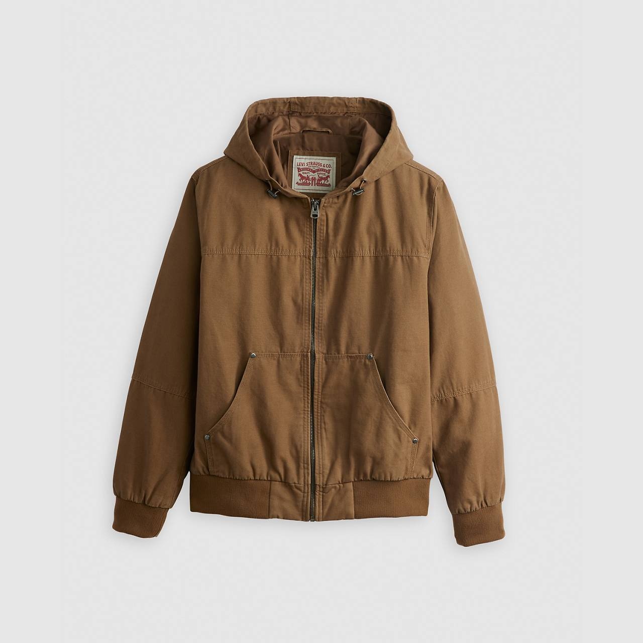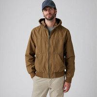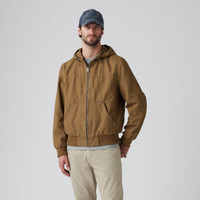 Crafted for the bold, the effortless, and the adventurous, this cotton workwear jacket blends rugged utility with a laid-back, street-smart vibe. The durable cotton canvas offers a breathable, yet sturdy feel, while the cozy hoodie adds that perfect layer of comfort. Designed with a sleek bomber silhouette, it brings both warmth and style, whether you're hard at work or out on the town. - Two lower hand pockets and one interior safety pocket - Center front zipper closure - Rib knit cuffs and hem - Levi's Red Tab at lower left pocket Style # 594900000 Color: Z9999 Cny Black Gold - Black How it Fits - Standard fit Composition & Care - 100% Cotton - Cotton - Zipper - Long sleeves - Machine wash cold with like colors, Delicate cycle, Use only non-chlorine bleach when needed, Tumble dry low, Cool iron if needed - Made in China