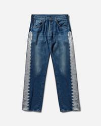 Levi's x Slam Jam 501 Custom Pants Blue Stone Washed 's second collaboration with Levi's®️ takes a deep dive into the history of the Far West as a major influence on contemporary culture. An exploration of multiple interpretations of old America, from the Leone films to the work of Ennio Morricone, through a vast selection of XIXth-century objects now part of the Slam Jam archive. - 100% Cotton - Non-Stretch - Button-Fly - 5-Pocket Construction - Silver Silk Pattern Screen Print at Sides - Woven Flag Label - Leather Patch at Back - Made in Italy - Style Code: 50155SJ 0073 SIZE & FIT Model is 6ft 1in/1.86m with a 30"/76cm waist and wears size W32L32. Measures (Size W32L32): 40cm Waist, 26cm Rise, 108cm Outseam, 78cm Inseam, 22cm Ankle.