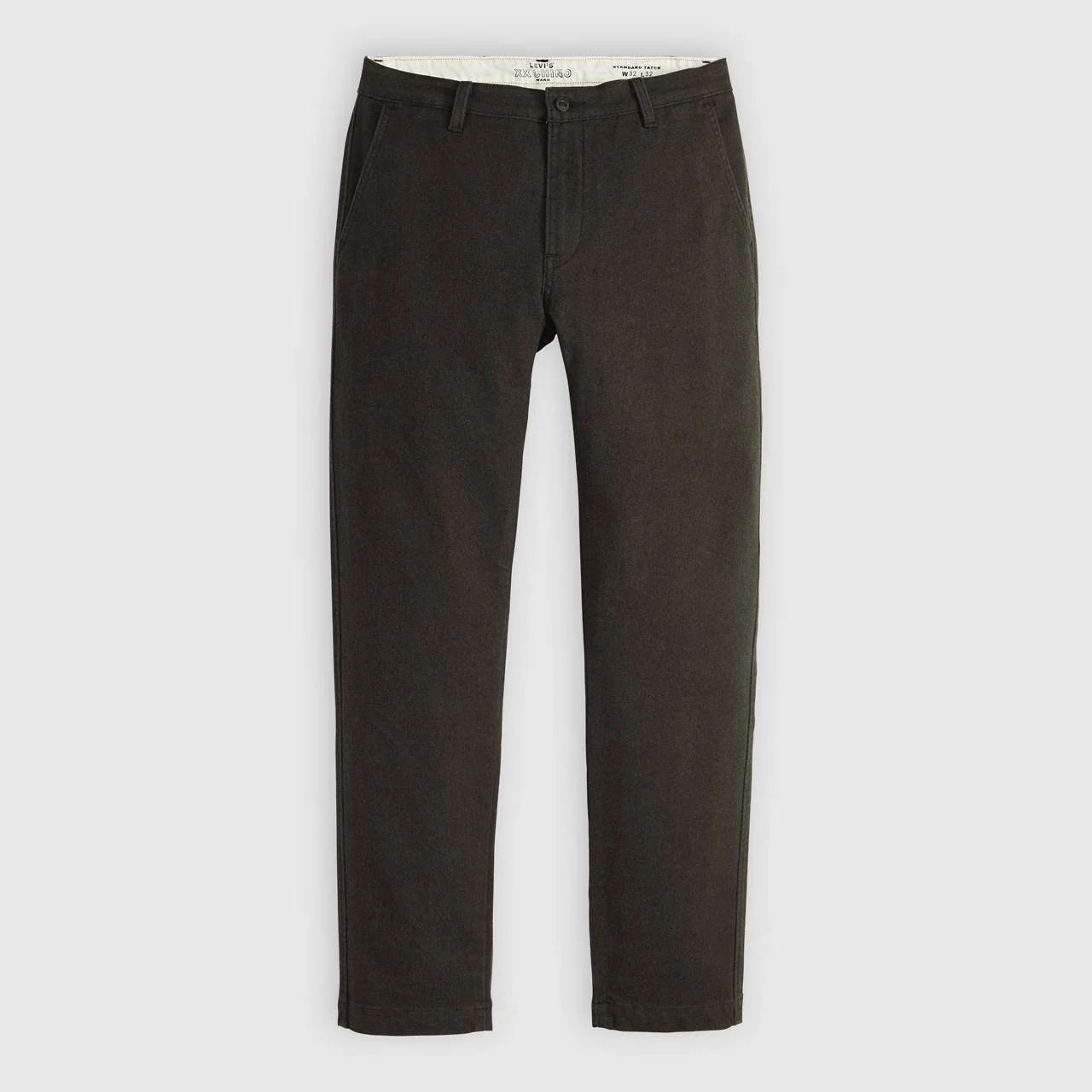 Levi's® XX Chino—don't call them khakis. Our XX Chino Standard Taper pants are softer, with just the right amount of stretch. Super clean and slim throughout, they'll keep you casually put together without looking like you tried too hard. - A modern take on the classic chino - Versatile fit that tapers down to the ankle - Made with a warm, wool-like twill - Features a hidden zip-secure pouch in the right pocket - Woven with a hint of stretch for all-day comfort and easy movement Style # 171960183 Color: Meteorite - Black How it Fits - Regular Through The Seat And Thigh - Sits Below Your Waist - Tapered Leg - Front rise: 10 3/4",Knee: 17",Leg opening: 13",Measurements based on size 32 Composition & Care - 79% Cotton, 2% Elastane, 19% Polyester - Stretch Wool-like Twill - Stretch - Zip fly - Imported