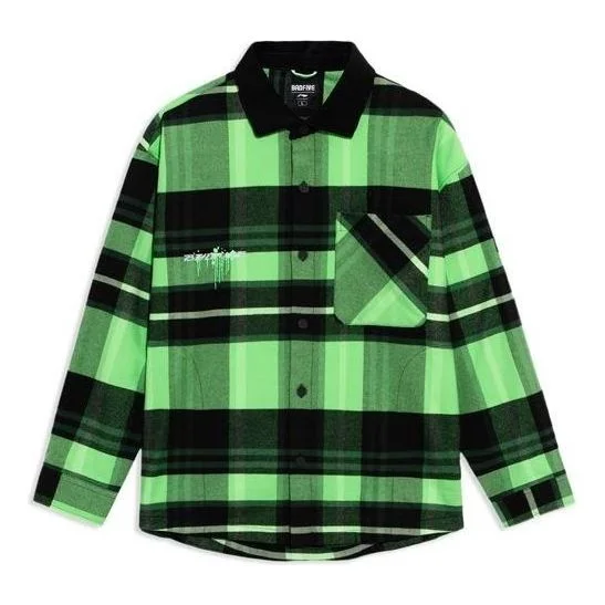 Li-Ning BADFIVE Sports Basketball Series Plaid Loose Fleece Lined Long Sleeves Shirt 'Green' ASHS005