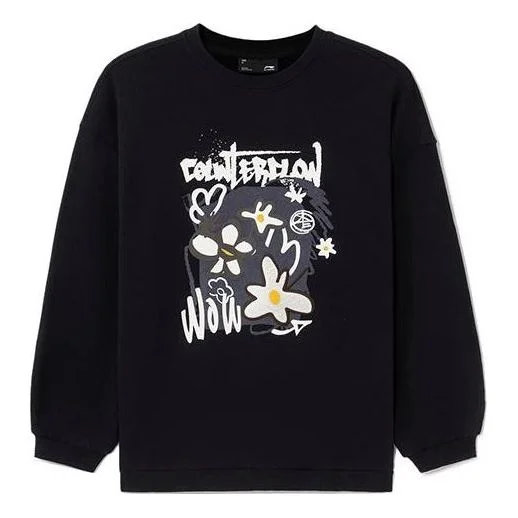 Li-Ning CF Sports Fashion Series Flowers Alphabet Printing Loose Fleece Lined Round Neck Pullover Ho
