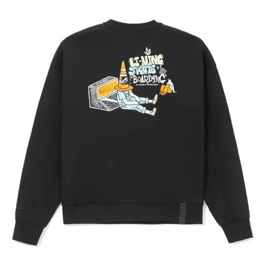Li-Ning Skateboard Series Back Cartoon Printing Loose Round Neck Pullover 'Black' AWDS165-3