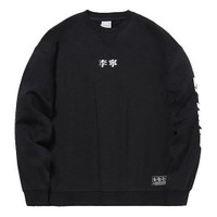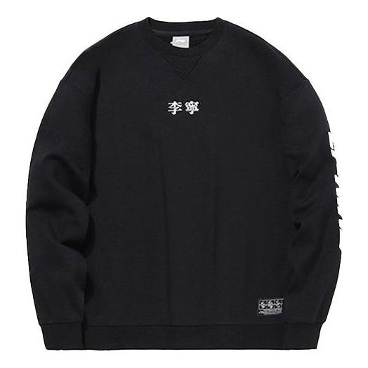 Li-Ning Sports Fashion Series Embroidered Logo Loose Fleece Lined Round Neck Pullover 'Black' AWDQD2
