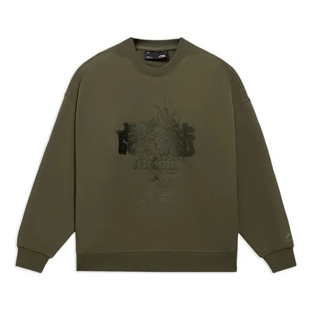 Li-Ning Sports Living Series CF Embroidered Pattern Loose Pullover 'Olive Green' AWDS599-4