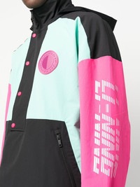 logo print hooded jacket jet black colour-block design logo print at the sleeve classic hood front press-stud fastening long sleeves two side zip-fastening pockets straight hem Imported Composition Outer: Nylon 92%, Spandex/Elastane 8% Lining: Polyester 100% SIZE & FIT Model measurements Height 6 ft 2 in(1.88 m) Bust/Chest 36.61 in(93 cm) Hips 35.82 in(91 cm) Waist 27.95 in(71 cm) Measurement CHEST 51.18 in(130 cm) SLEEVE LENGTH 20.07 in(51 cm) Shoulder Width 28.74 in(73 cm) Washing instructions Machine Wash