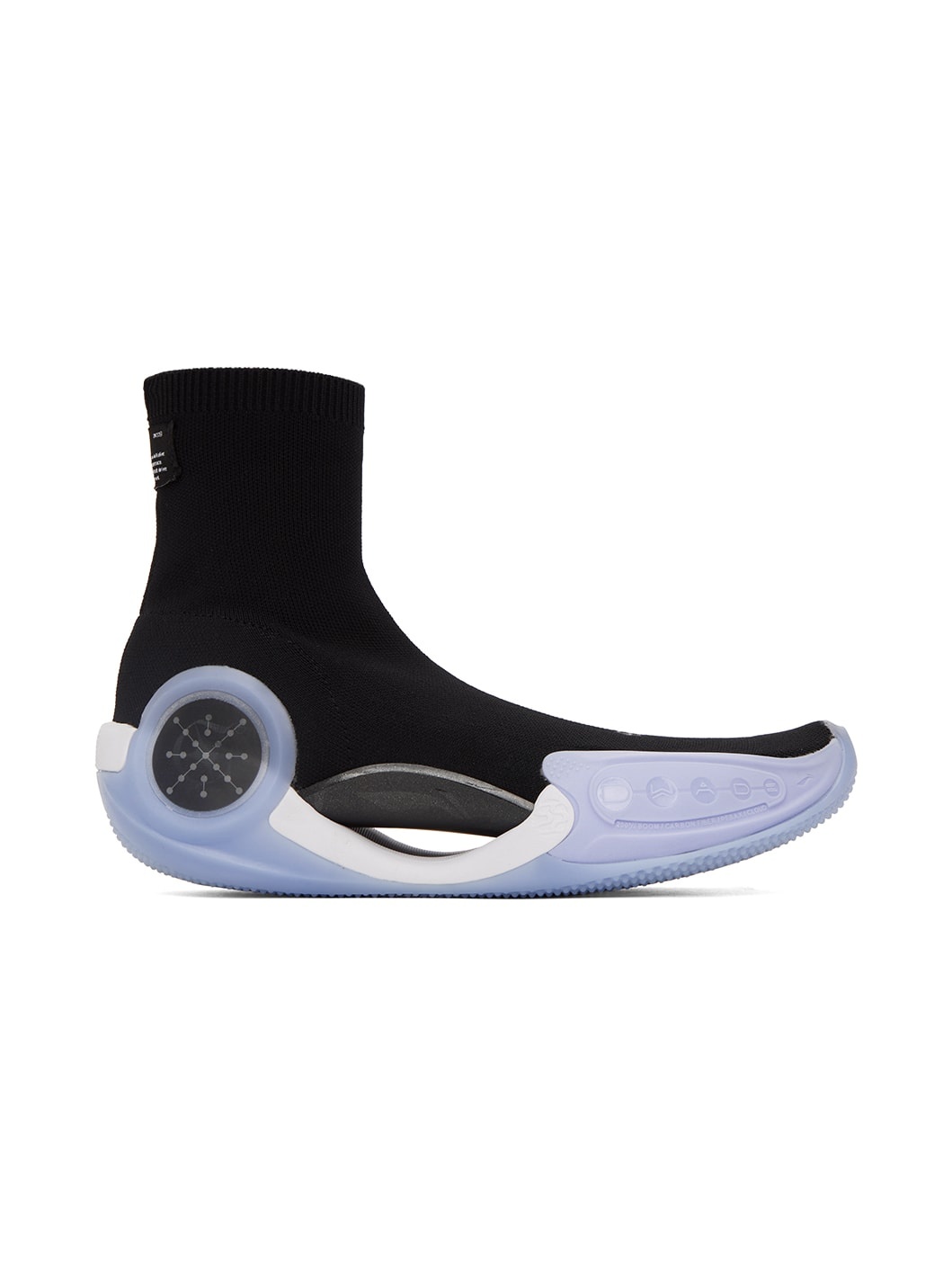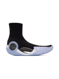High-top jersey sock-style sneakers in white. Iridescent logo bonded at vamp. · Rib knit collar · Textile logo patch at heel tab · Lenticular-printed logo patch at outer side · Cutout at logo-embossed sculptural rubber midsole · Treaded rubber outsole Part of the WADE x Glare collection. Supplier color: White