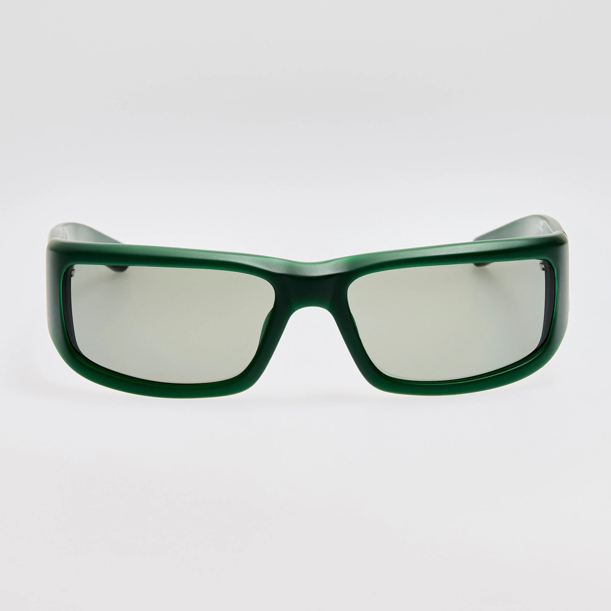 The Aero sunglasses feature a matt green acetate wraparound frame for a bold, contemporary look. Fitted with solid navy lenses that offer 100% UV protection, sculpted nose pads ensure all-day comfort. Temples are detailed with gold branding, adding a subtle touch of luxury. Details -Country of origin: Japan -100% UV protected lenses -Acetate frame with acetate temples -sku:JAC132C3SUN Size & Fit 63mm lens width 12mm bridge width 135mm temple length