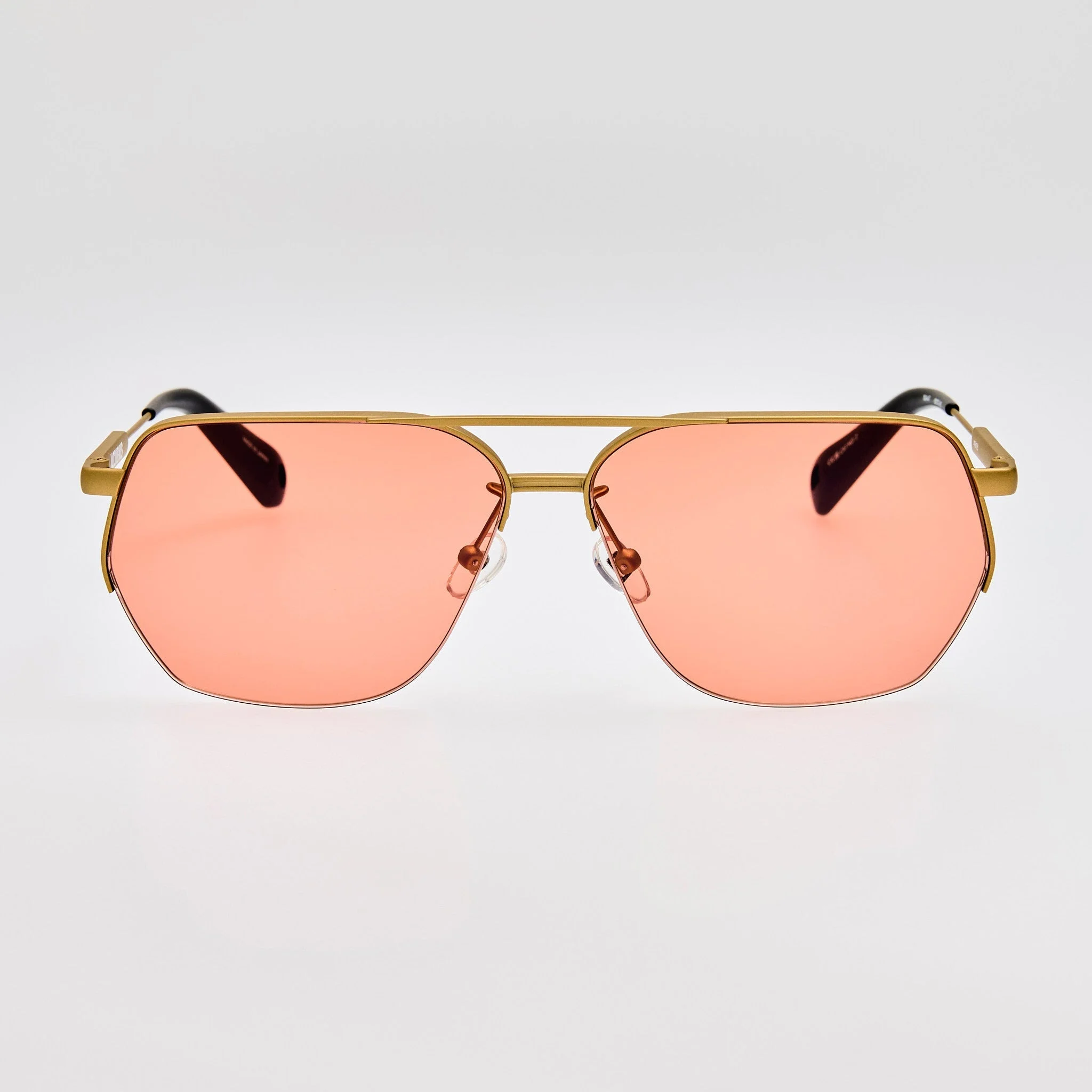 This Aviador silhouette reinterprets the classic aviator with a matte putty stainless steel front and contrasting black temple tips. Warm amber lenses this frame is fitted with adjustable nose pads for a tailored, comfortable fit. Details -Country of origin: Japan -100% UV protected lenses -Stainless Steel Frame -sku:JAC67C5SUN Size & Fit 63mm lens width 12mm bridge width 135mm temple length