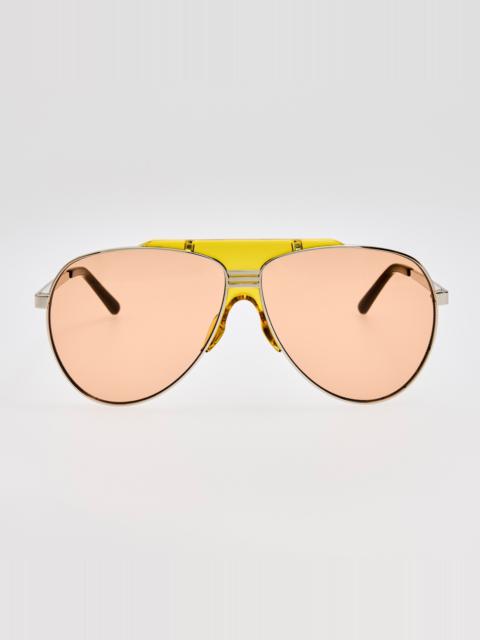 Introducing the aviator sunglasses from our collaboration with Milan fashion house The Attico. The frame is crafted from silver stainless steel and features contrasting black sculpted nose pads for a precise and comfortable fit. The style is fitted with solid purple lenses for 100% UV protection. Details -Country of origin: Japan -100% UV protected lenses -Stainless Steel Frame -sku:ATTICO78C2SUN Size & Fit 63mm lens width 12mm bridge width 135mm temple length