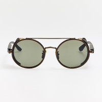Introducing the Baret Oval frame from the Explorer collection. This oval frame is crafted from matt nickel plated pure Japanese titanium with contrasting 22k gold plated titanium details on the temples. Fitted with solid grey lenses offering full UV protection. The frame features adjustable titanium nose pads that offer a tailored fit by allowing bespoke positioning for enhanced comfort. This style includes removable black rubber side shields and matching temple covers, adding functional protection and striking detail. Each component is interchangeable and available in additional colour options, allowing you to personalize your look and adapt to different environments and styling preferences. Details -Country of origin: Japan -100% UV protected solid lenses Titanium frame with titanium temples -Titanium Made in Japan -sku: LFL1631C1SUN Size & Fit 51mm lens width 19mm bridge width 145mm temple length