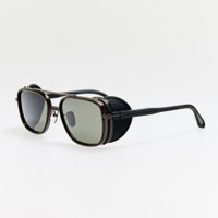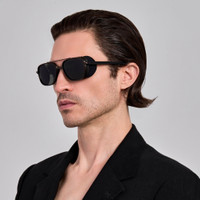 Introducing the Boyd Aviator frame from the Explorer collection. This frame is crafted from matt nickel plated pure Japanese titanium. Fitted with solid grey lenses for a tonal all black look it offers complete UV protection. The frame features adjustable titanium nose pads that offer a tailored fit by allowing bespoke positioning for enhanced comfort. This style includes removable black rubber side shields and matching temple covers, adding functional protection and striking detail. Each component is interchangeable and available in additional colour options, allowing you to personalize your look and adapt to different environments and styling preferences. Details -Country of origin: Japan -100% UV protected solid lenses Titanium frame with titanium temples -Titanium Made in Japan -sku: LFL1630C4SUN Size & Fit 55mm lens width 18mm bridge width 145mm temple length