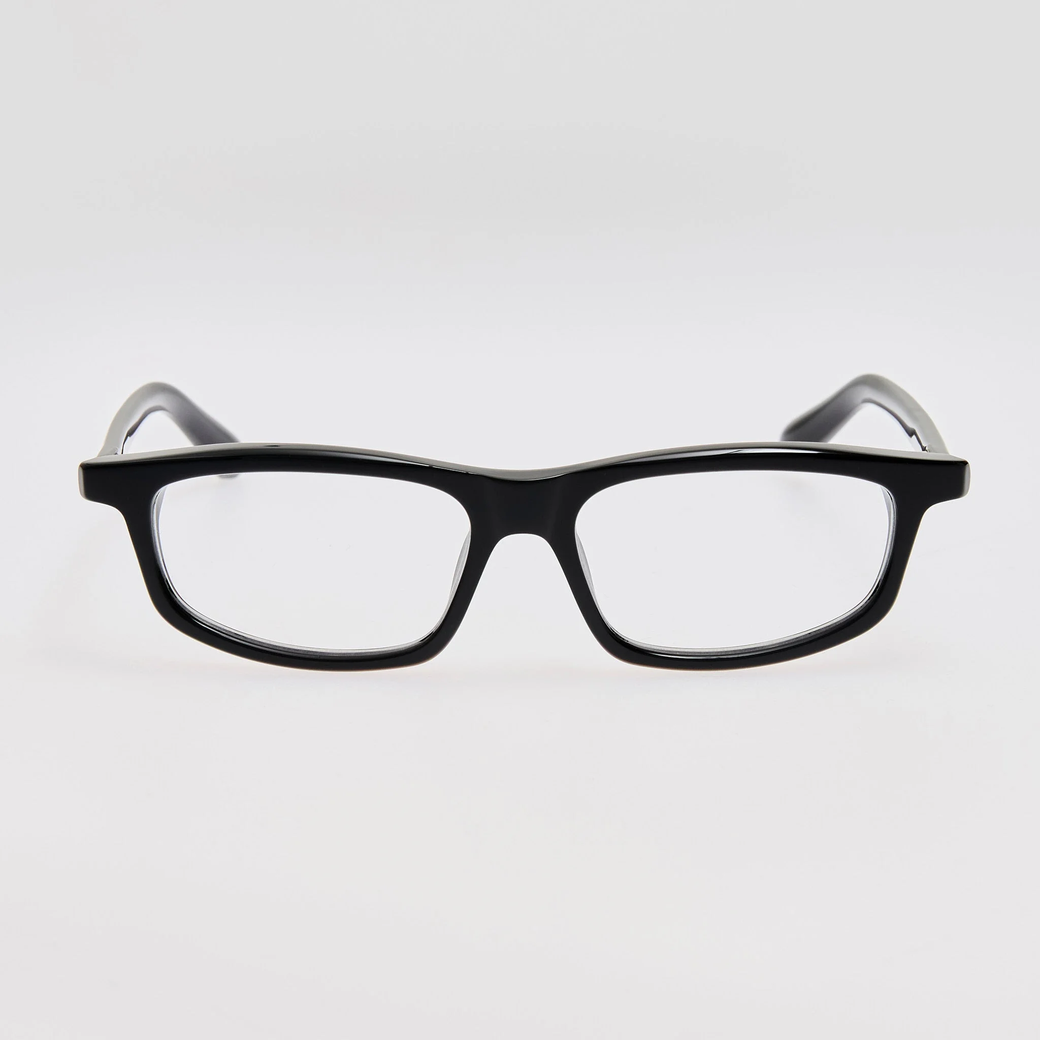 The Cuadro frame in black acetate offers a bold D-frame design. Sculpted nose pads provide all-day comfort, while temples are accented with silver branding for a refined finish. Details -Country of origin: Japan -Optical lens free from prescription -Acetate frame with acetate temples -sku:JAC124C1OPT Size & Fit 63mm lens width 12mm bridge width 135mm temple length