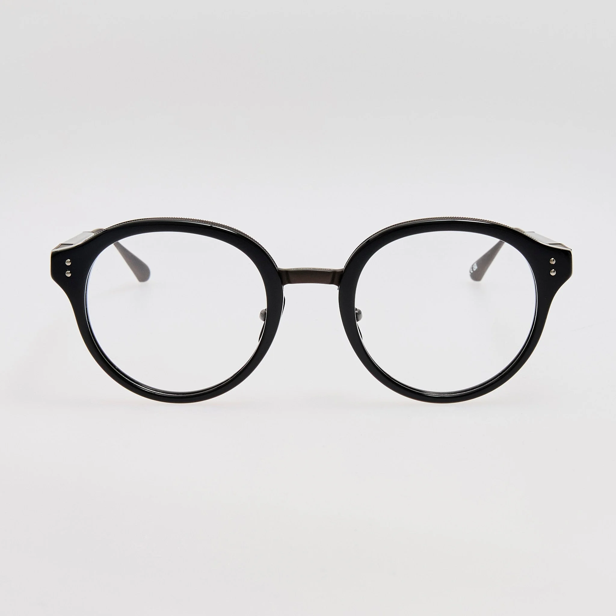Curtis features a combination oval-shaped frame with a front crafted from black Italian acetate, complemented by matt nickel titanium temple tips for enhanced durability. The frame is fitted with adjustable titanium nose pads, ensuring personalized comfort and support. Details -Country of origin: Japan -Optical lens free from prescription -Titanium frame with titanium temples -LFL1516C3OPT