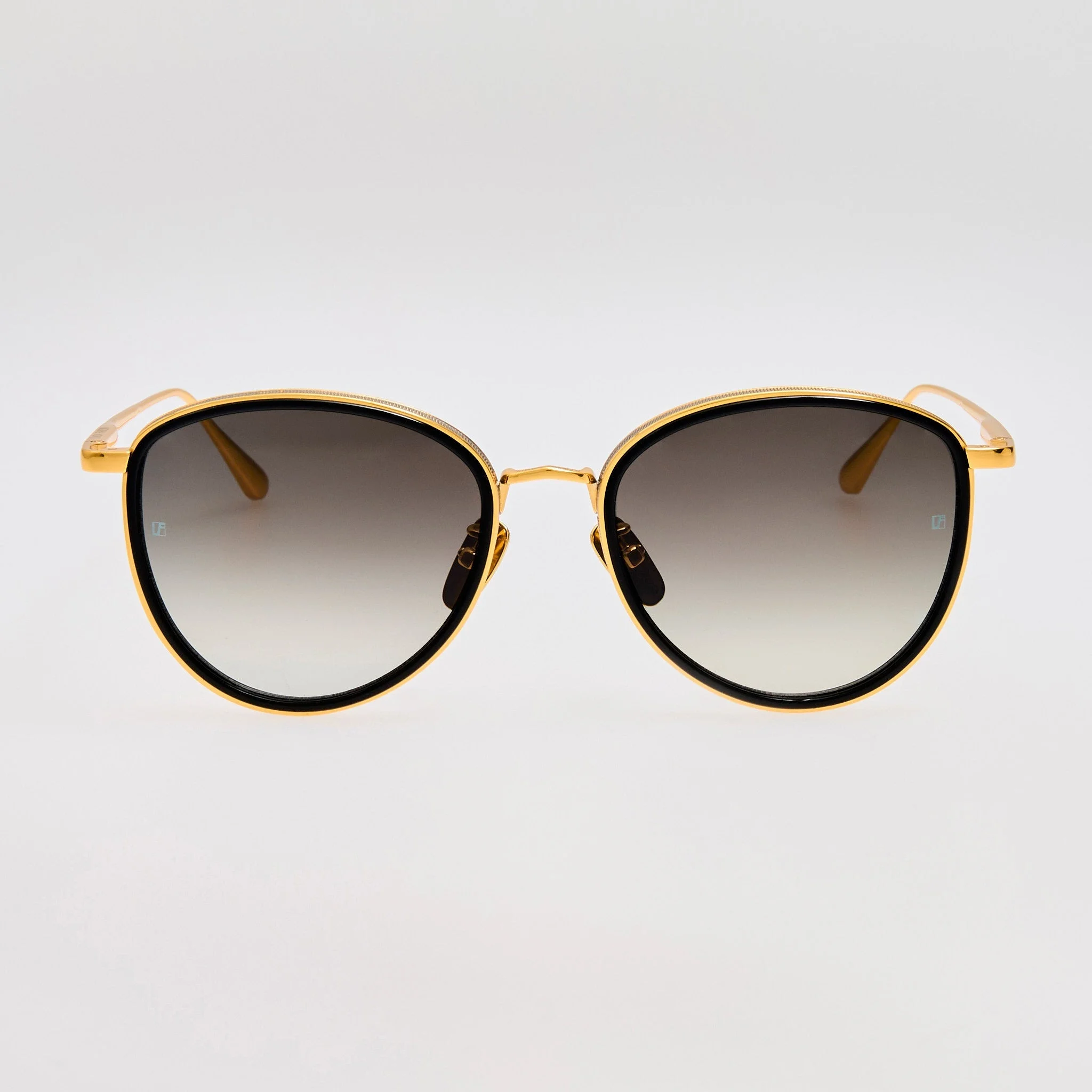 A bold take on a timeless silhouette, the Dahlia frame is crafted from 22 carat yellow gold plated pure Japanese titanium in a polished oval shape. Fitted with grey gradient lenses offering full UV protection and sculpted adjustable nose pads for a secure, lightweight fit. Details -Country of origin: Japan -100% UV protected lenses -Titanium frame with titanium temples -sku:LFL1580C4SUN Size & Fit 52mm lens width 18mm bridge width 145mm temple length