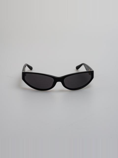 Introducing the Etain wrap frame. This sunglasses are crafted from black Italian acetate and fitted with solid grey lenses offering 100% UV protection. This frame features sculpted acetated nose pads for optimal comfort Details -Country of origin: Japan -100% UV protected lenses -Acetate frame with acetate temples -sku:LFL1655C1SUN Size & Fit 66mm lens width 18mm bridge width 120mm temple length