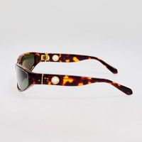 Introducing the Etain wrap frame. This sunglasses are crafted from dark tortoiseshell Italian acetate and fitted with solid deep green lenses offering 100% UV protection. This frame features sculpted acetated nose pads for optimal comfort Details -Country of origin: Japan -100% UV protected lenses -Acetate frame with acetate temples -sku:LFL1655C2SUN Size & Fit 66mm lens width 18mm bridge width 120mm temple length