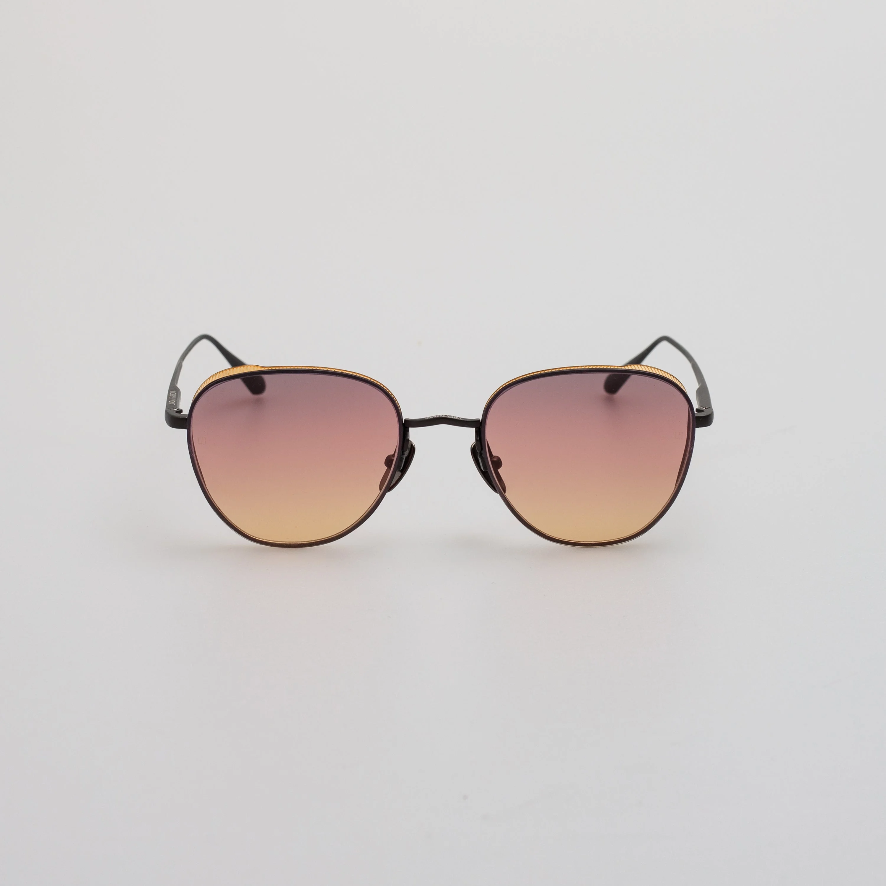 Handcrafted entirely from Japanese titanium, these Linda Farrow oval browline sunglasses are the epitome of modern luxury. With contrasting sunset lenses, the sleek, lightweight temples are attached at the top of the frames. Fitted with adjustable nose pads. Details -Country of origin : Japan -100% UV protected solid lenses -Titanium frame with titanium temples -sku:LFL1503C3SUN Size & Fit 54mm lens width 18mm bridge width 145mm temple length "