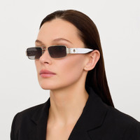 This product is a limited edition of 125. The edition number is printed on the inside of the temple #/125. This rectangular combination frame is crafted from 22 carat white gold-plated pure Japanese titanium with contrasting white temples crafted from Italian acetate, offering a sleek and modern aesthetic. The frame provides durability and lightweight comfort, perfect for everyday wear. The gradient grey lenses deliver 100% UV protection, combining style with sun safety. Fitted with adjustable titanium nose pads, this frame ensures a personalized, comfortable fit. Details -Country of origin: Japan -100% UV protected lenses -Titanium frame with acetate temples -sku:LFL1470C3SUN Size & Fit 57mm lens width 18mm bridge width 140mm temple length