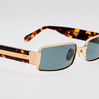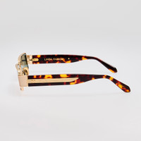 The KAIA is a rectangular combination frame crafted from light gold-plated pure Japanese titanium, paired with contrasting tortoiseshell temples crafted from Italian acetate. This frame is fitted with adjustable nose pads that allow bespoke positioning for enhanced comfort. Finished with deep green lenses that offer 100% UV protection. Details -Country of origin: Japan -100% UV protected lenses -Titanium frame with acetate temples -sku:LFL1532C4SUN Size & Fit 56mm lens width 18mm bridge width 140mm temple length