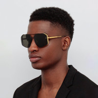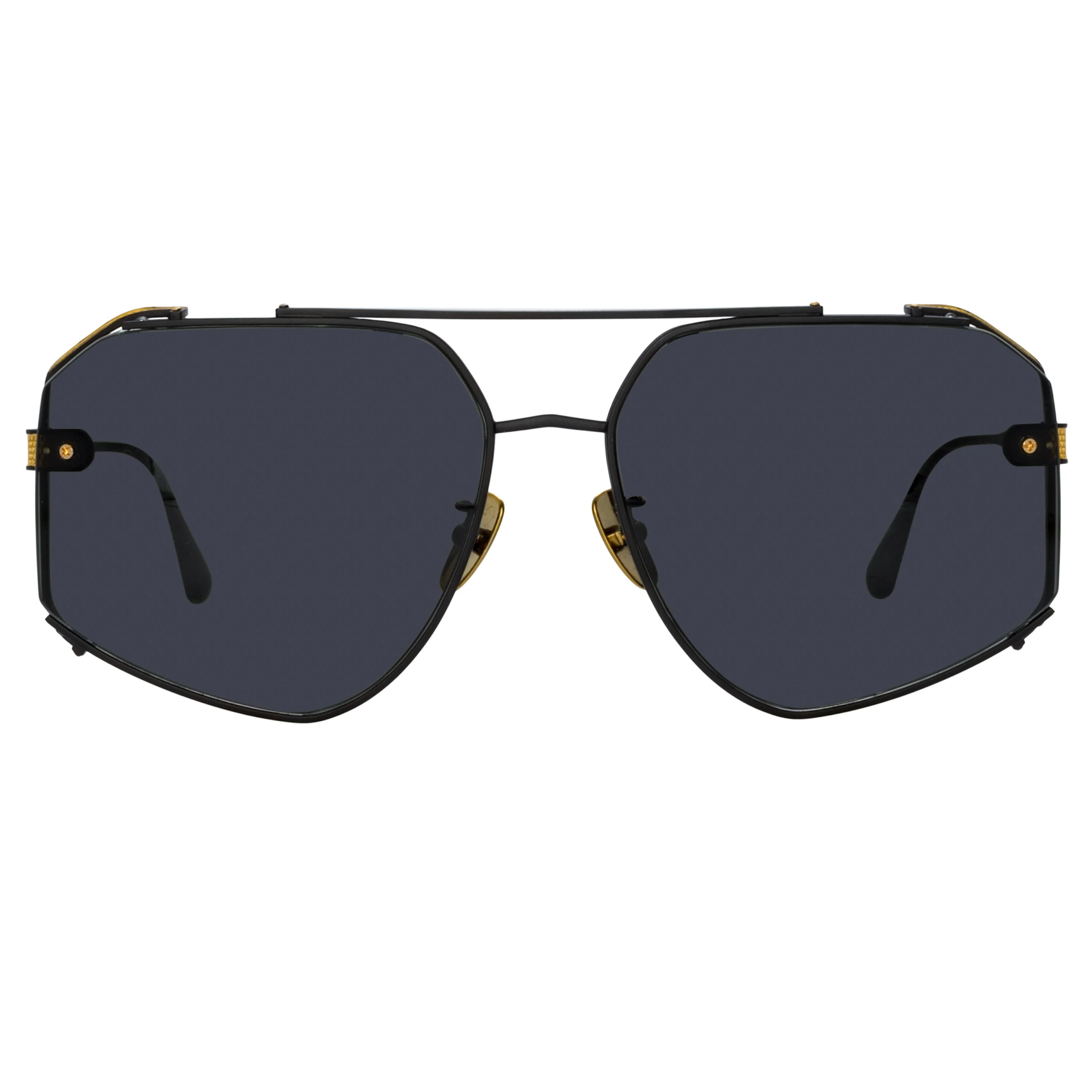 Introducing the Amar Aviator Sunglasses from the LINDA FARROW A/W '24 collection. Crafted from luxurious matt nickel plated Japanese titanium with featured 22 carat gold plated accents and solid grey lenses. These gold plated aviator sunglasses offer a complex in-house design for a statement look. . Also available in Women's Details -100% UV protected solid lenses -Titanium frame with titanium temples -Made in Japan -sku:LFL1505C1SUN Size & Fit 61mm lens width 17mm bridge width 145mm temple length